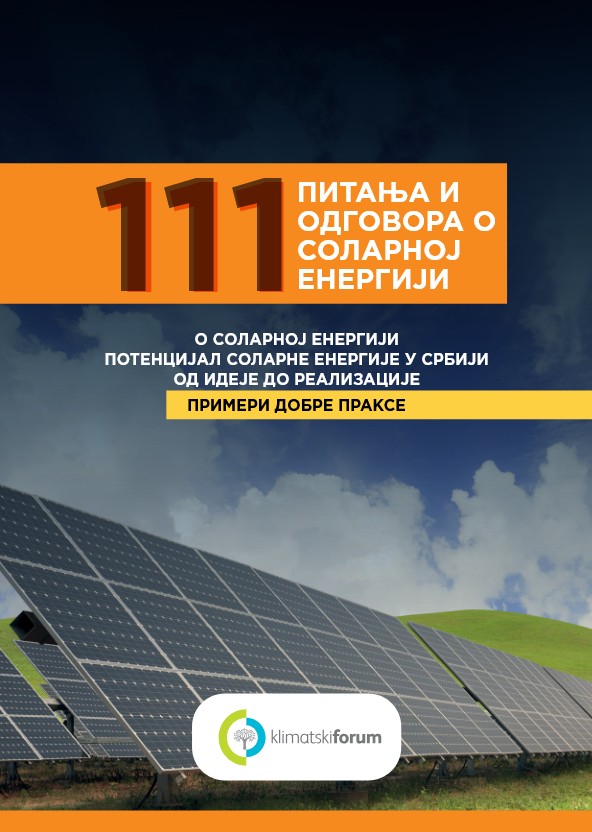 Publikacija „111 pitanja i odgovora o solarnoj energiji” je nastala kao deo projekta „Klimatski forum“ koji je podržan kroz EKO-SISTEM – program podrške reformama u životnoj sredini, koji sprovode Mladi istraživači Srbije, uz podršku Švedske.
